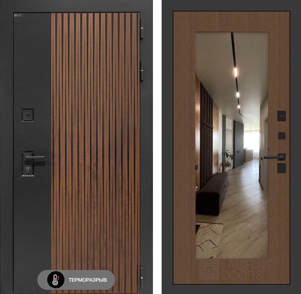 Входная дверь Айслаб с зеркалом 18 - Дуб кантри темный
