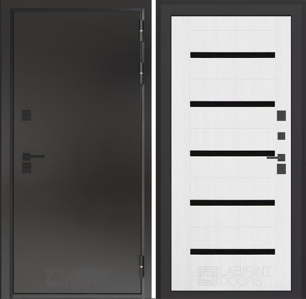 Входная дверь Бункер 10 Тепло 01 - Белое дерево, стекло черное