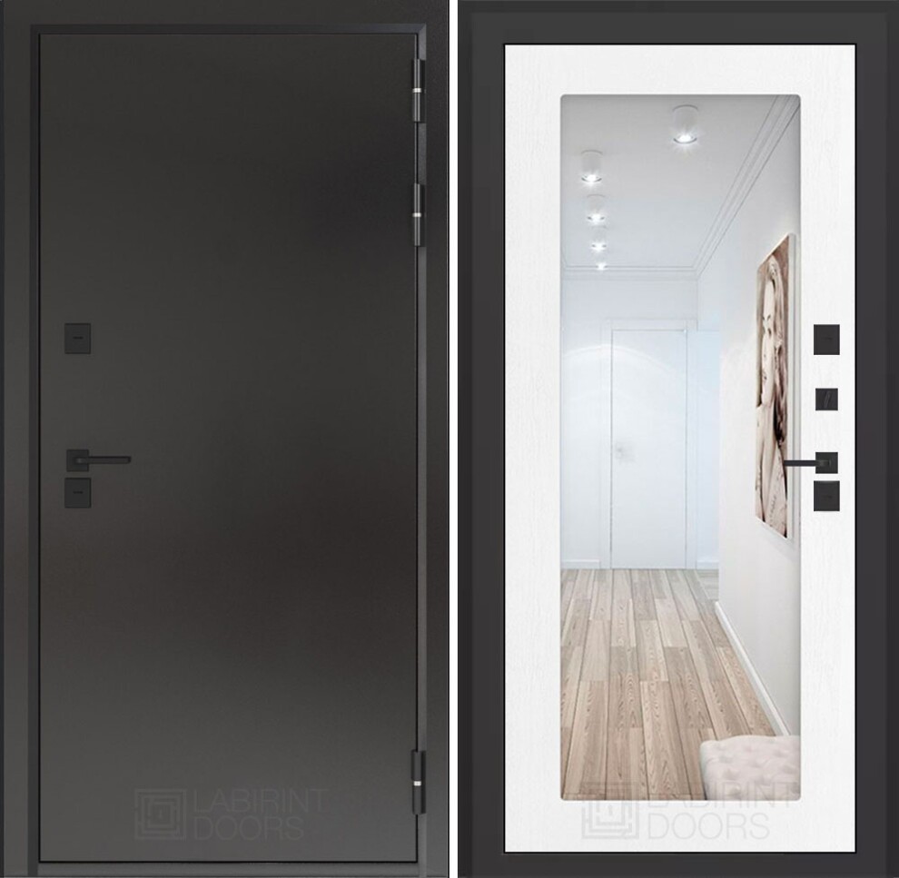 Входная дверь Бункер 10 Тепло с зеркалом 18 - Белое дерево