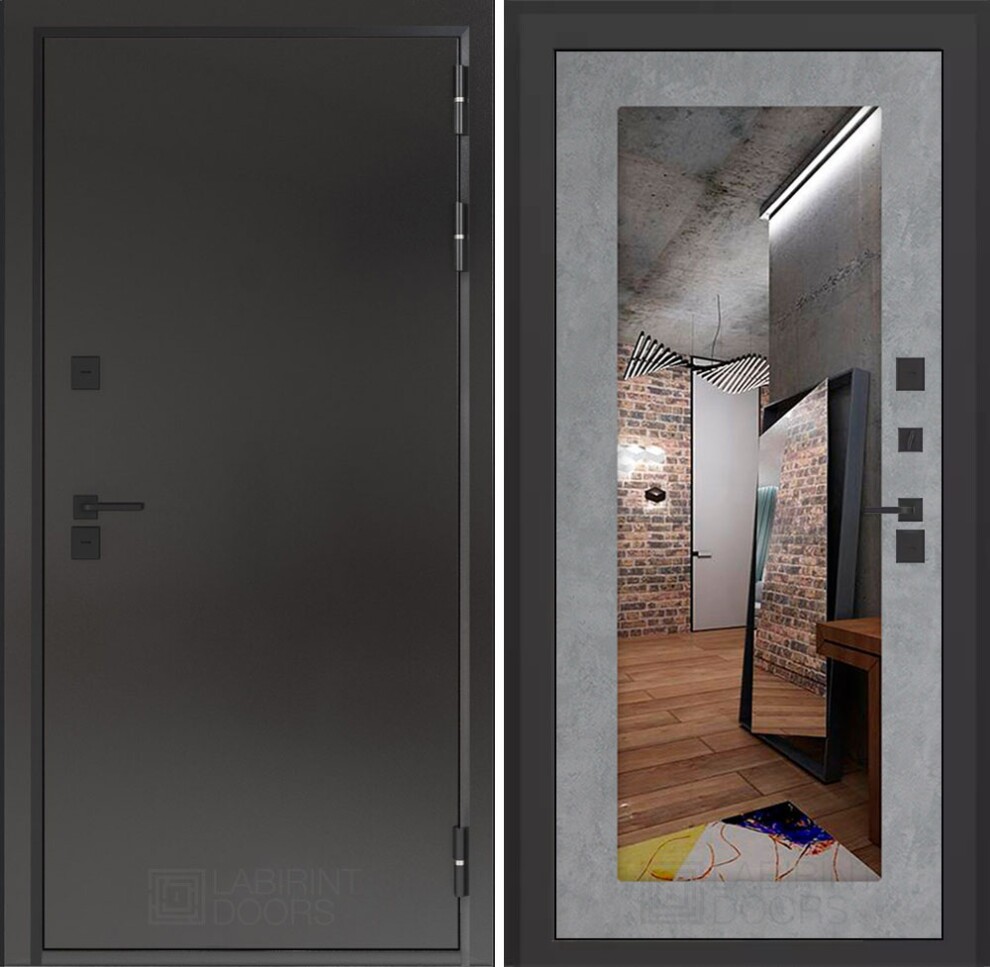 Входная дверь Бункер 10 Тепло с зеркалом 18 - Бетон светлый