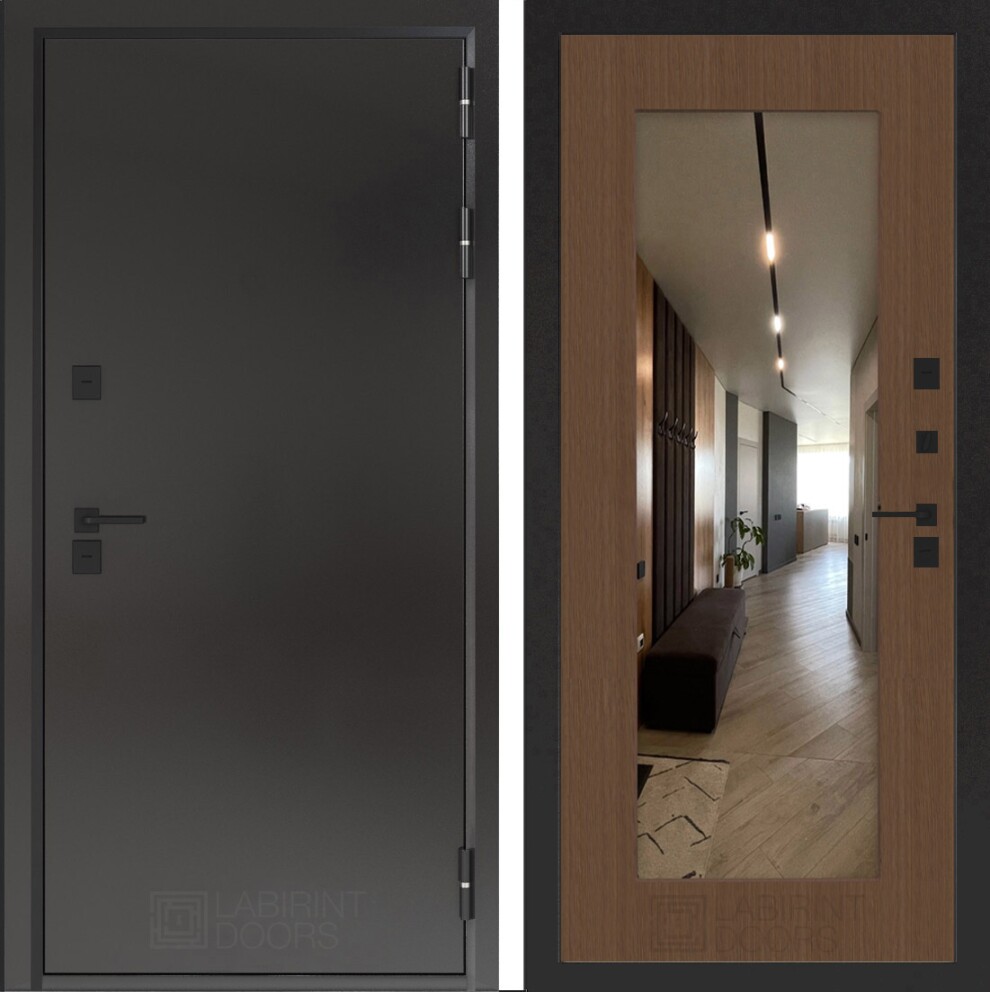Входная дверь Бункер 10 Тепло с зеркалом 18 - Дуб кантри темный