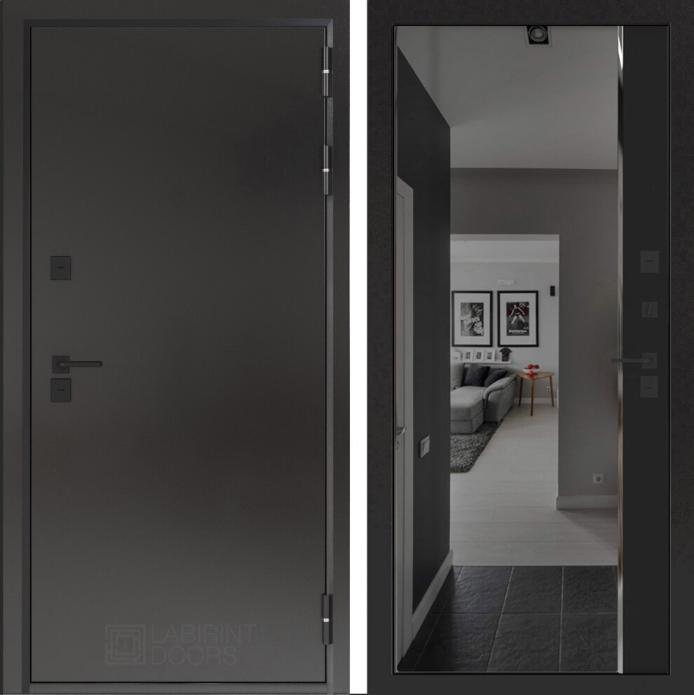 Входная дверь Бункер 10 Тепло с зеркалом Панорама тонированное - Черный кварц