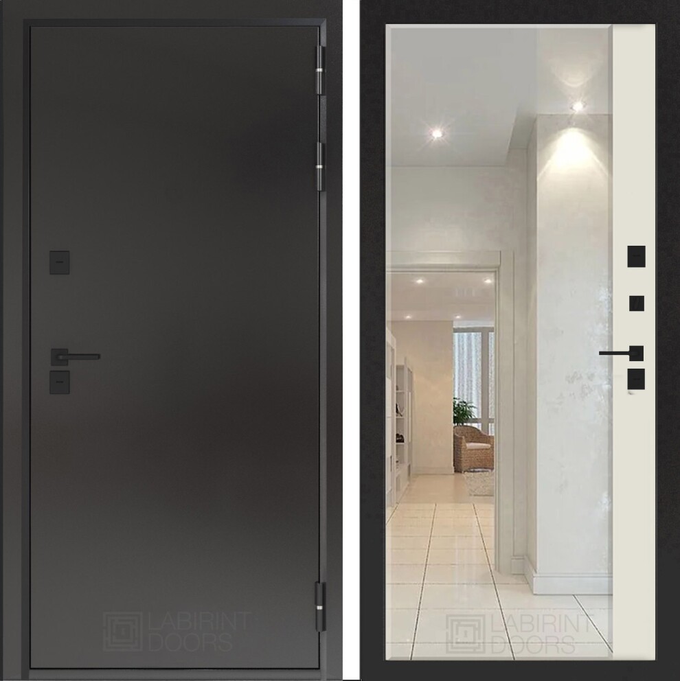 Входная дверь Бункер 10 Тепло с зеркалом Панорама - Ванилла веллюто