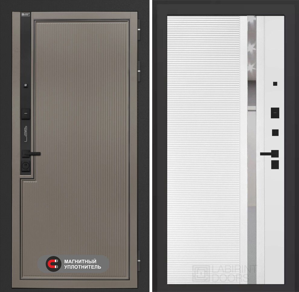 Входная дверь Лаб 1 Про 31 - Белый софт, зеркальная вставка с тонировкой