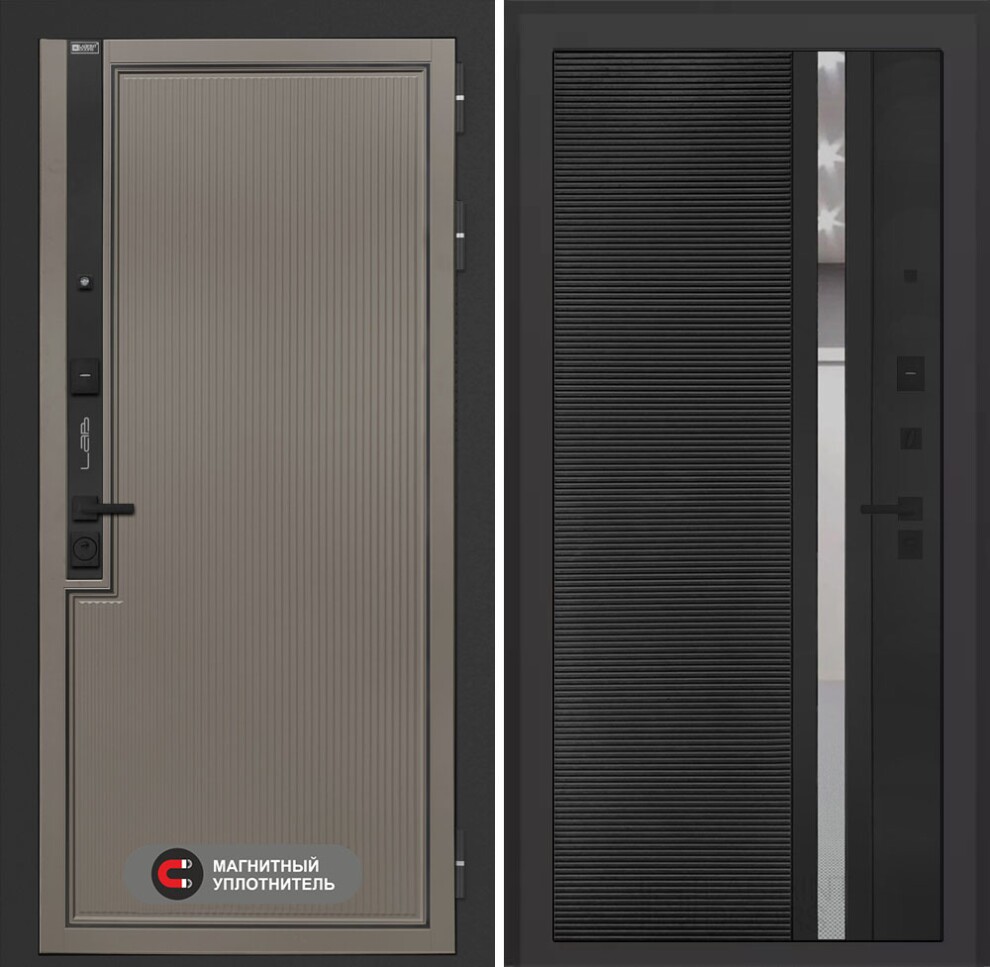 Входная дверь Лаб 1 Про 31 - Черный кварц, зеркальная вставка с тонировкой