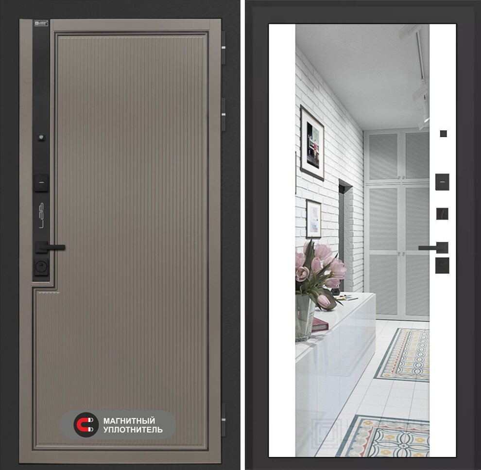 Входная дверь Лаб 1 Про с зеркалом Максимум - Белый софт