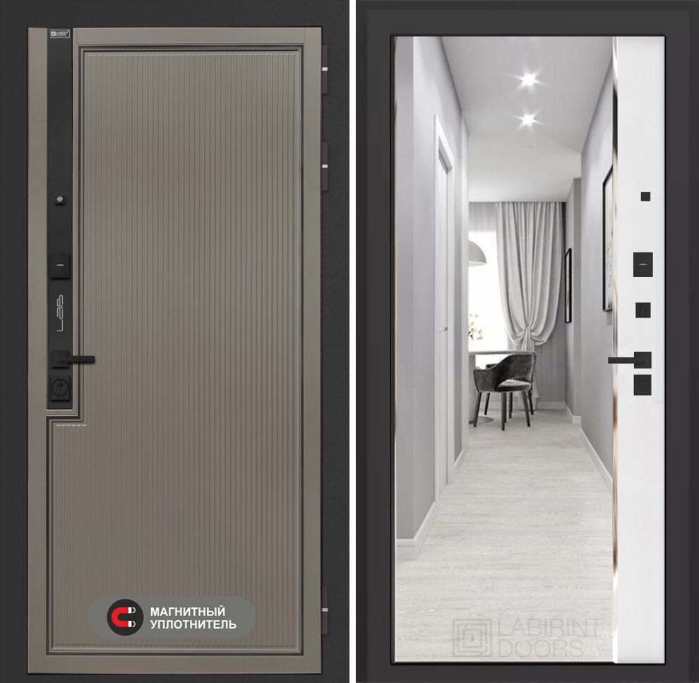 Входная дверь Лаб 1 Про с зеркалом Панорама - Белый софт