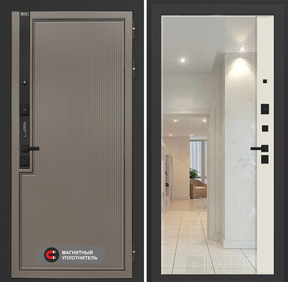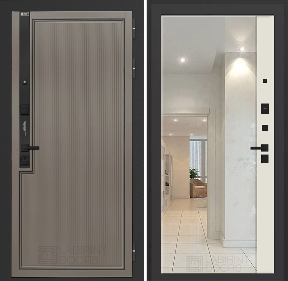 Входная дверь Лаб 1 Про с зеркалом Панорама - Ванилла веллюто
