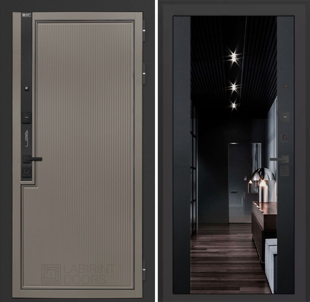 Входная дверь Лаб 1 Про с зеркалом (тонированное) Максимум - Черный кварц