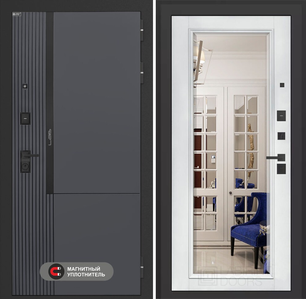 Входная дверь Лаб 2 Про 05 с зеркалом Фацет - Белый софт