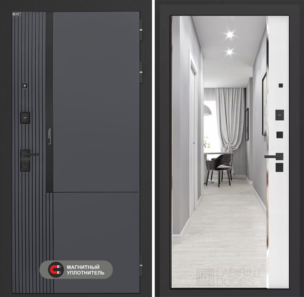 Входная дверь Лаб 2 Про с зеркалом Панорама - Белый софт