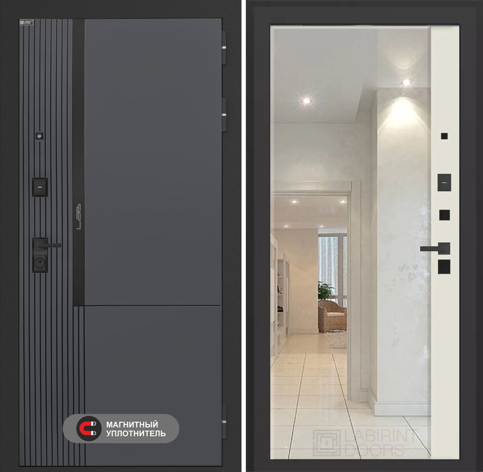 Входная дверь Лаб 2 Про с зеркалом Панорама - Ванилла веллюто