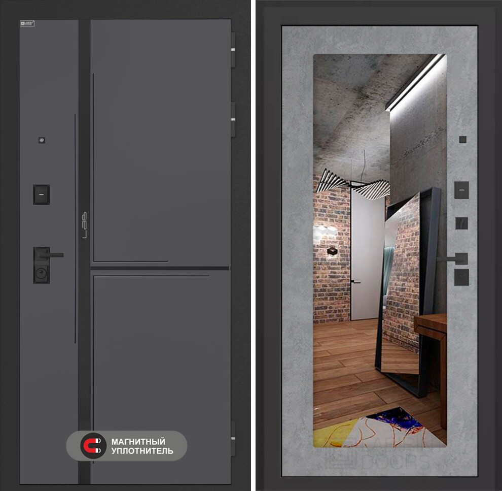 Входная дверь Лаб 3 Про с зеркалом 18 - Бетон светлый