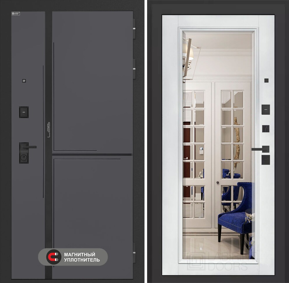 Входная дверь Лаб 3 Про с зеркалом Фацет - Белый софт