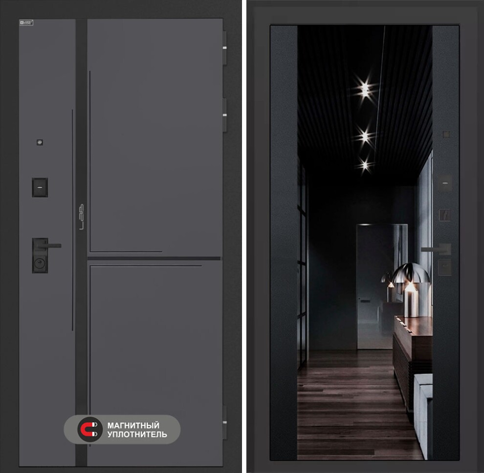 Входная дверь Лаб 3 Про с зеркалом (тонированное) Максимум - Черный кварц