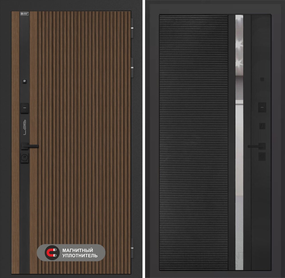 Входная дверь Лаб 4 Про 31 - Черный кварц, зеркальное тонированное стекло