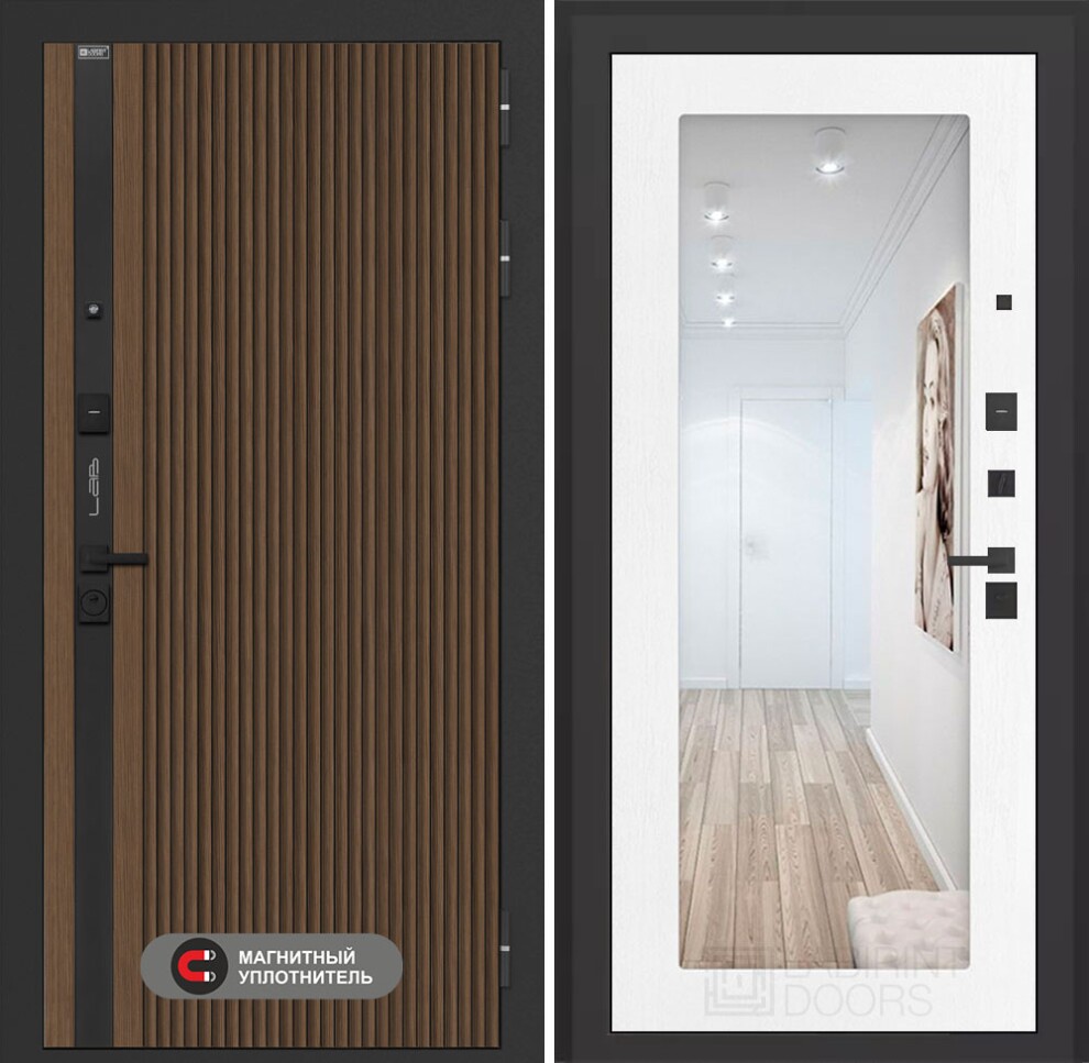 Входная дверь Лаб 4 Про с зеркалом 18 - Белое дерево