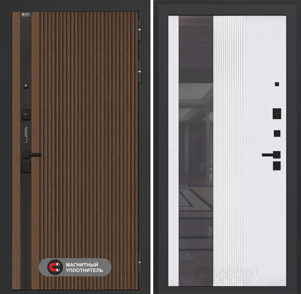 Входная дверь Лаб 4 Про с зеркалом 32 тонированным - Белый рельеф софт