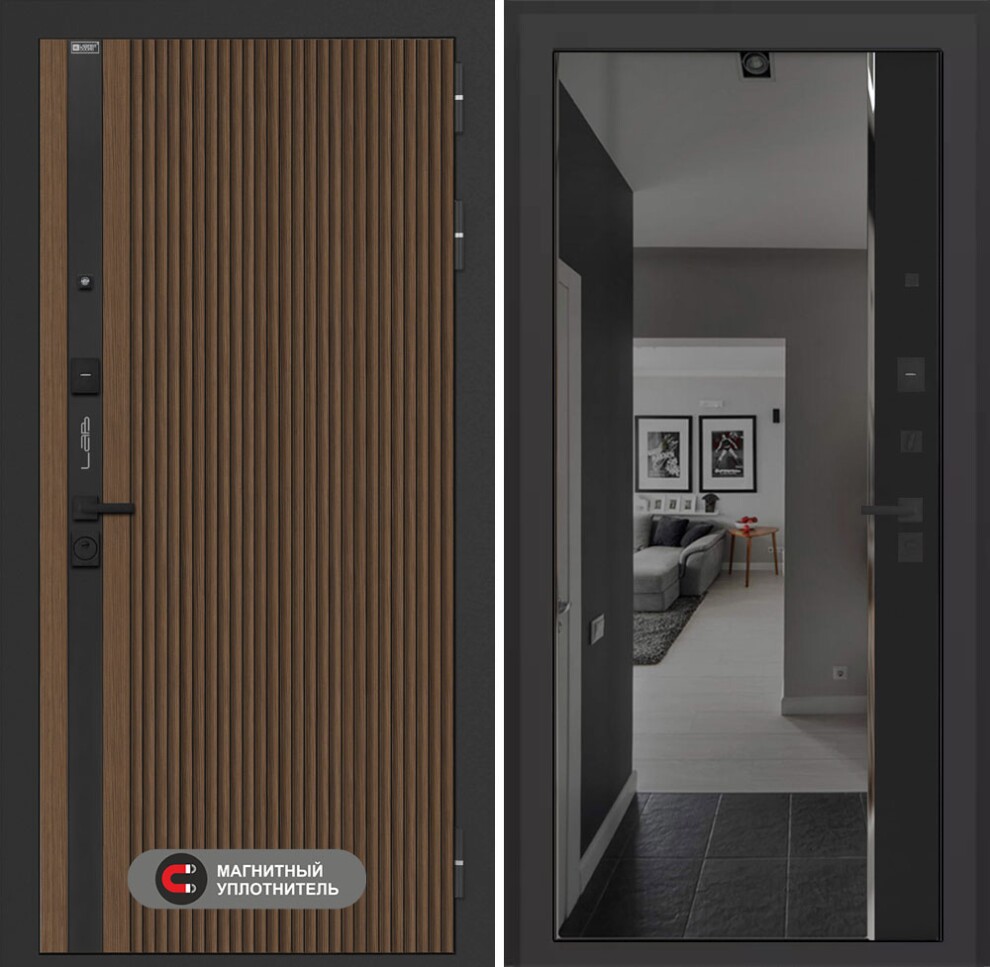 Входная дверь Лаб 4 Про с зеркалом (тонированное) Панорама - Черный кварц